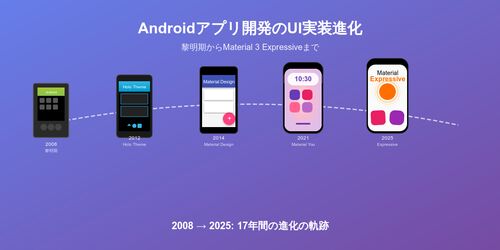 1. はじめに こんにちは、xtone Androidエンジニアの石原です。 本記事では、AndroidのUI実装がどのように進化してきたのかを、黎明期、Material Design、Material 2、Material You(Material 3)、そして最新のMaterial 3 Expressiveまで、時系列で分かりや…