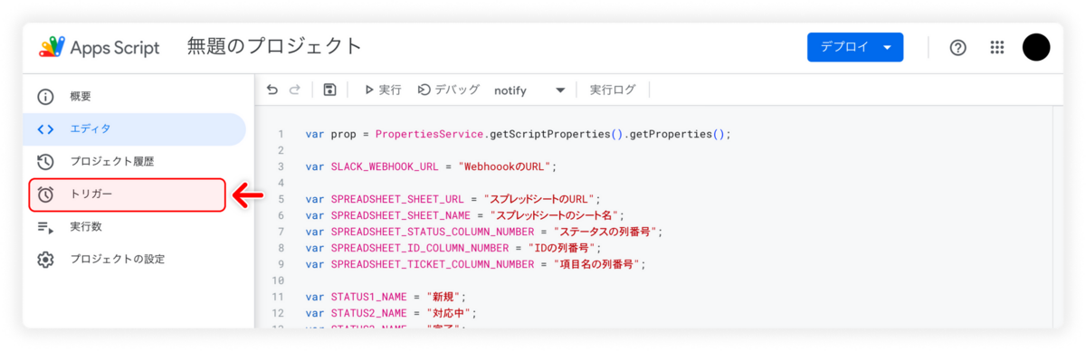 Google Apps Script(GAS)に記述する