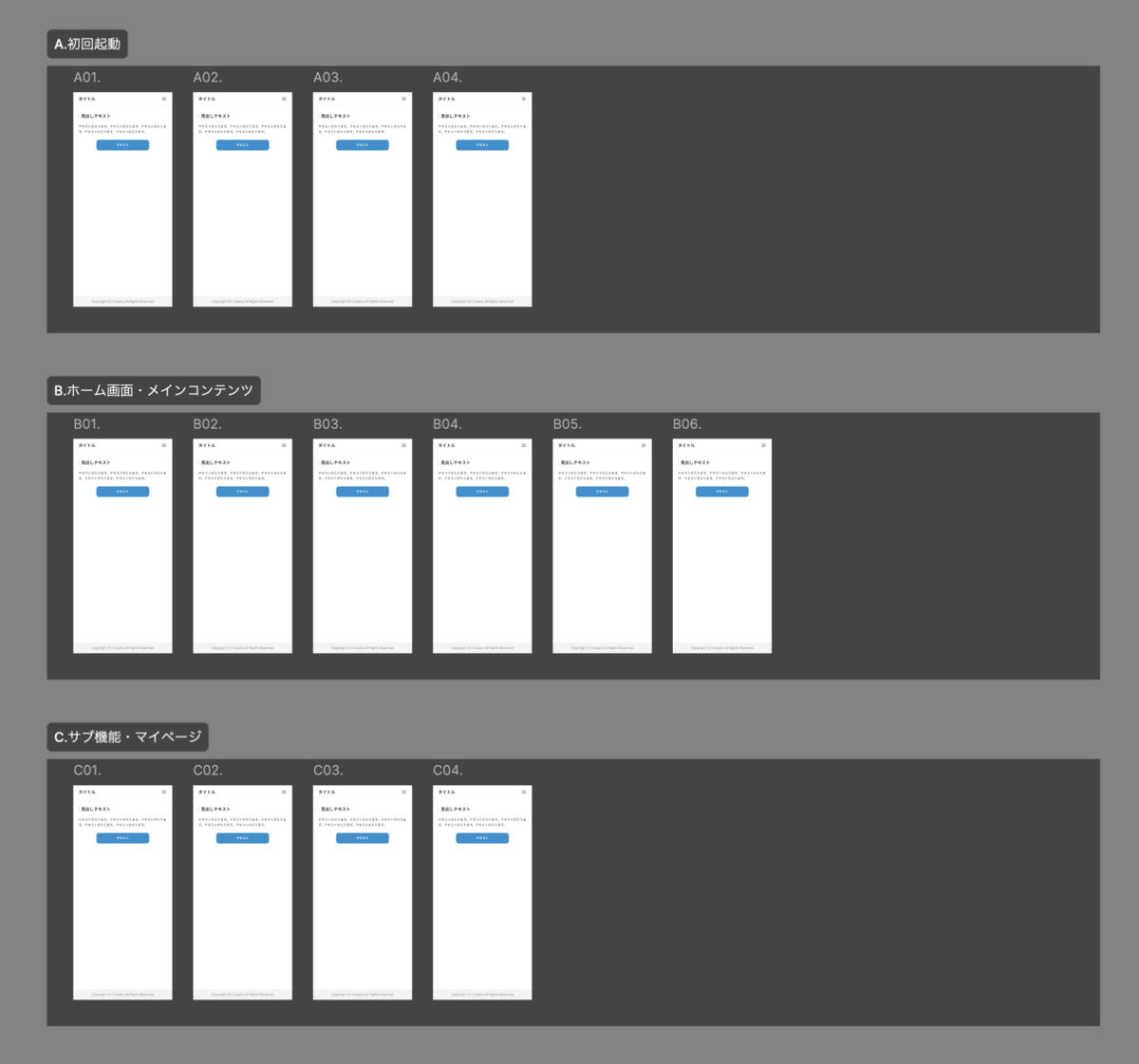 このようにカテゴリー分けを行うことで、ワイヤーフレームの構造がより明確になり、命名規則も自然に決まります。
